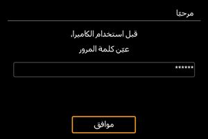 أو استئناف تشغيل الكاميرا من وضع إيقاف التشغيل التلقائي. أدخل كلمة المرور التي قمت بتعيينها.