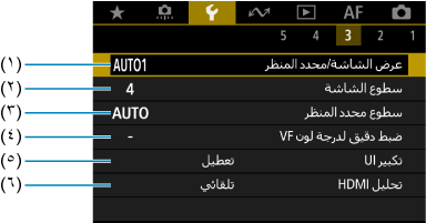 - (١) عرض الشاشة/محدد المنظر