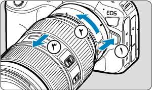 - للتعرف على احتياطات التعامل مع العدسة، انظر تركيب عدسات RF/RF-S وفكها.