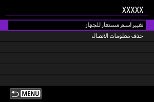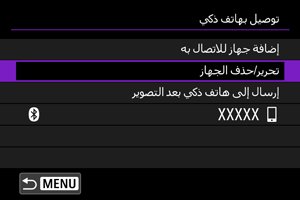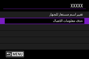 قبل تحرير إعدادات الاتصال للأجهزة الأخرى أو حذفها، ينبغي إنهاء اتصال Wi-Fi. وهنا، يتم استخدام [