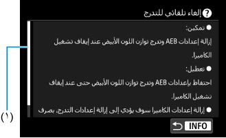 عند عرض [ مساعدة]، يمكنك عرض وصف حول الميزة عن طريق الضغط على الزر