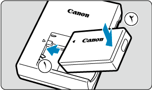 - في حالة عدم إضاءة لمبة الشحن أو حدوث مشكلة أثناء الشحن يتضح ذلك من خلال وميض مصباح الوصول باللون البرتقالي، افصل سلك الطاقة، وأعد إدخال البطارية، وانتظر لبضعة دقائق قبل توصيل التيار مرة أخرى. وفي حالة استمرار المشكلة، يُرجى أخذ كاميرا الفيديو إلى أقرب مركز من مراكز خدمة Canon.