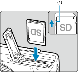 - تأكد من أن مفتاح حماية الكتابة (١) الخاص بالبطاقة قد تم ضبطه للأعلى لتمكين الكتابة والمسح.