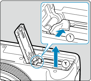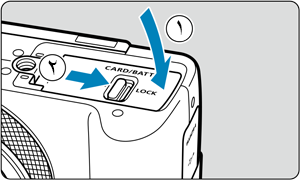 - تحقق من أن مصباح الوصول (١) على وضع الإيقاف قبل فتح غطاء البطاقة/حجرة البطارية.