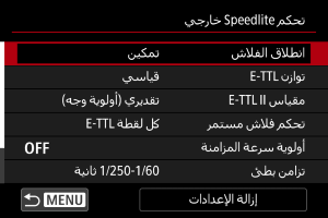 : تحكم Speedlite خارجي] بالكاميرا. اضبطه مباشرة على Speedlite.