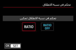 - (٢) الوظائف اللاسلكية/التحكم في معدل الإطلاق نسبة (RATIO)
