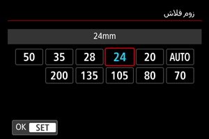 مع وجود وحدات فلاش Speedlite مزودة برأس فلاش للتقريب، يمكنك تعيين تغطية الفلاش.