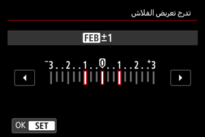 قد تؤدي وحدات الفلاش Speedlite المزودة بتدرج تعرض الفلاش (FEB) إلى تغيير خرج الفلاش الخارجي تلقائيًا حيث يتم التقاط ثلاث لقطات مرة واحدة.