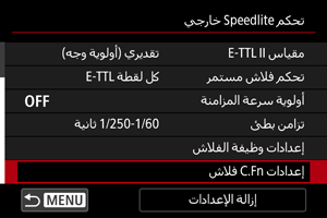 - حدد [إزالة إعدادات الفلاش] أو [إزالة كل Speedlite C.Fn].