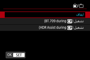 تصوير HDR(PQ)] أو في التصوير باستخدام صور مخصصة () مشابهًا للمظهر على أجهزة عرض HDR كما هو موضح على شاشة الكاميرا، أو محدد المنظر، أو أجهزة العرض التي لا تدعم تقنية HDR والمتصلة عبر HDMI.