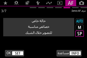 يمكنك ضبط معلمات تتبع Servo AF حسب الحاجة لظروف التصوير.