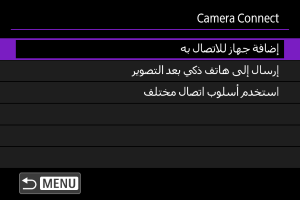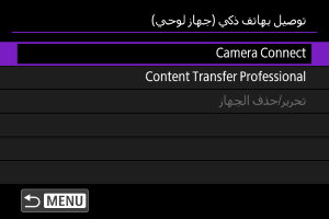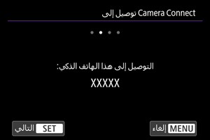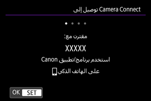 - إذا كان تطبيق Camera Connect غير مثبت، فاستخدم الهاتف الذكي لمسح رمز QR المعروض على الشاشة، وانتقل إلى Google Play أو App Store لتثبيت تطبيق Camera Connect، ثم اضغط على