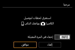 يتم عرض تعليمات توصيل الكاميرا بهاتف ذكي إذا حددت [موافق] عند ظهور شاشة ().