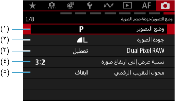 - (٤) نسبة عرض إلى ارتفاع صورة