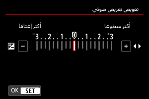 : تعويض تعريض ضوئي] واضبط مقدار التعريض على هذه الشاشة.
