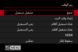 تُضاف رموز وقت لخرج فيديو HDMI. عند ضبط [تشغيل]، تظهر [تسجيل فوري].