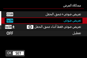 ] معتمًا في حالة توقف التعرض الضوئي أو محاكاة عمق المجال، أو إذا توقفت كلتا المحاكاة.