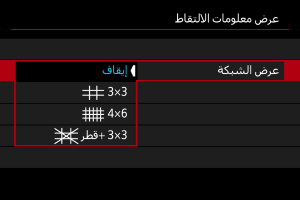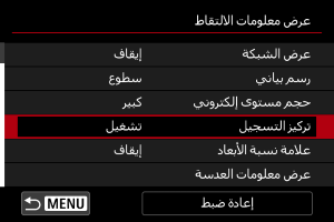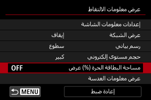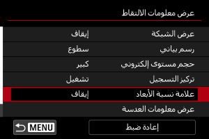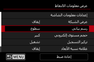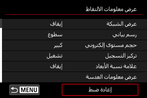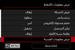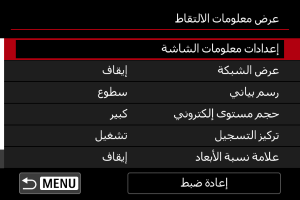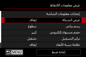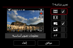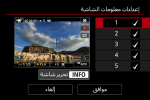 لاختيار شاشات المعلومات التي سيتم عرضها على الكاميرا.