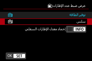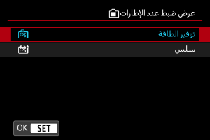 يمكنك ضبط معدل إطارات العرض لشاشة التصوير أثناء التقاط الصور الثابتة. اختر ما إذا كنت تريد الحفاظ على طاقة البطارية أو استخدام معدل إطارات عالٍ للعرض.