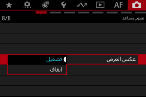 يمكن عرض صورة معكوسة عند التصوير مع تدوير الشاشة نحو الهدف (باتجاه مقدمة الكاميرا).