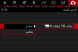 حدد [: زيادات 1/8-إيقاف Av] ().