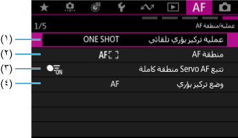 قوائم علامات التبويب: ضبط البؤرة تلقائيًا (الصور الثابتة)