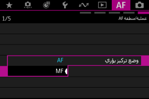 - بعد الضغط على الزر المعين لـ [اختيار نقطة AF]، يمكنك استخدام المفاتيح