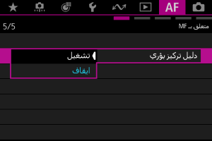 يؤدي ضبط [: دليل تركيز بؤري] على [تشغيل] إلى عرض إطار إرشادي يوضح الاتجاه الذي يجب ضبط البؤرة عليه ومدى الضبط المطلوب.