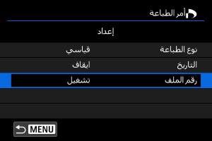 - قم بإعداد الخيارات [نوع الطباعة] و[التاريخ] و[رقم الملف].