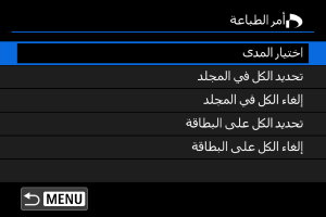 حدد [تحديد الكل في المجلد] وحدد المجلد. سيتم تضمين أمر طباعة لكل صورة من الصور.