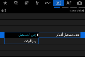 - يتم دائمًا إضافة رموز الوقت إلى ملفات الأفلام، بغض النظر عن الإعداد [عداد تسجيل أفلام].