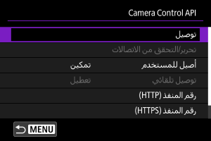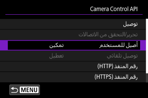 سيؤدي تحديد [تمكين] إلى إنشاء اتصال تلقائيًا في المرة التالية التي يتم فيها تشغيل الكاميرا بعد إيقاف تشغيلها.