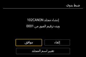 عند إعادة ضبط ترقيم الملفات يدويًا، يتم إنشاء مجلد جديد تلقائيًا ويبدأ ترقيم ملفات الصور المحفوظة في ذلك المجلد من ٠٠٠١.