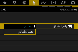 لاحظ أن الترقيم قد يستمر بعد عدد أي أفلام موجودة على البطاقات الجديدة. إذا كنت تفضل ترقيم الأفلام المستمر، ففكر في استخدام بطاقة تمت تهيئتها حديثًا في كل مرة.