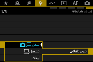 - خلال تشغيل الصور، لن يتم تدوير الصور التي تم التقاطها أثناء ضبط التدوير التلقائي على [ايقاف]، حتى إذا ضبطت بعد ذلك التدوير التلقائي على [تشغيل].