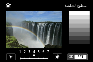 لضبط سطوع الشاشة، ثم اضغط على