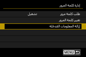 يمكنك مسح كلمة المرور وغيرها من المعلومات التي تم إدخالها على الكاميرا.