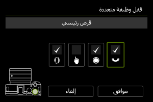 - يؤدي الضغط على زر قفل وظيفة متعددة إلى قفل وحدات التحكم في الكاميرا [