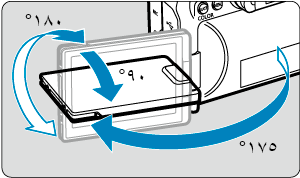 - عندما يكون الكبل متصلًا بطرف توصيل الكاميرا، يكون نطاق زاوية استدارة الشاشة محدودًا.
