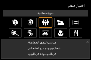 استخدِم [] (صورة جماعية) لالتقاط الصور الجماعية. يمكنك التصوير مع وجود أشخاص من الأمام والخلف في نطاق التركيز البؤري.