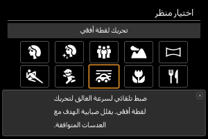 - تنحصر خيارات منطقة ضبط البؤرة تلقائيًا في [AF نقطة واحدة] و[منطقة AF مرنة 1] و[منطقة AF مرنة 2] و[منطقة AF مرنة 3].
