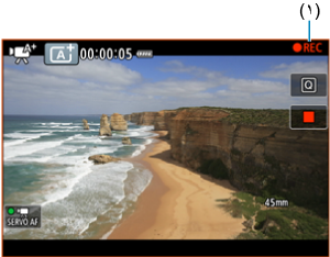 REC] (١) ويتم تحديد الشاشة باللون الأحمر، ويضيء مصباح التسجيل.