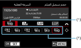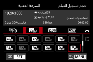 - قد يتم تحديث معدل إطار التسجيل إذا قمت بتغيير [