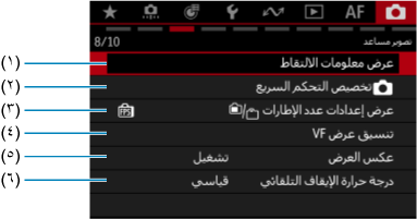 - (٣) عرض إعدادات عدد الإطارات