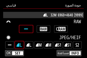 عند قيامك بضبط RAW وJPEG/HEIF على [