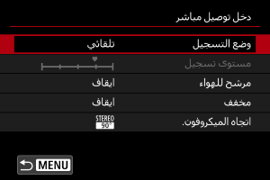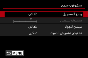 - تختلف عناصر الإعدادات المتوفرة وفقًا للميكروفون المستخدم.