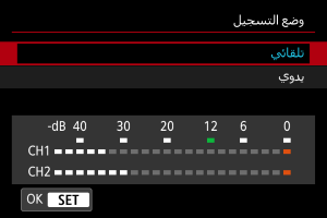 يتم ضبط مستوى التسجيل الصوتي تلقائيًا. سيتم تفعيل التحكم في المستوى تلقائيًا استجابةً لمستوى الصوت.