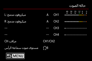 - [مراقب CH] يشير إلى القنوات التي تم ضبطها في [تصوير مراقب CH] لـ [سماعات الرأس] في [