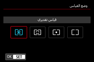 هناك أربع طرق (أوضاع القياس) لقياس درجة سطوع الهدف. ونوصي عادةً باستخدام قياس تقديري. في الوضع المنطقة الأساسية، يتم تعيين القياس التقديري تلقائيًا.