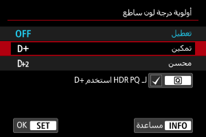 : أولوية درجة لون ساطع] على [تعطيل] عند ضبط [